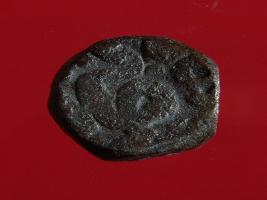 | Description / विवरण | Copper dam fulus of Akbar 962-1014 AH; 1556-1605 AD , from an unknown unidentifiable mint. Obverse fulus with a quatrefoil. Reverse - 9 nuhsad -. 9 - 9 AH . Only the svad of nuhsad on flan. |