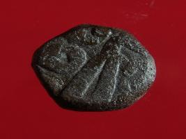 | Provenance / उद्गम/क्षेत्र | Reportedly found in village Satiawala, thana Sadar, Dist. Fzpr, 4 km off the Fzpr-Moga road in the field of Harbans Singh s o Jang Singh while excavating earth for making bricks. Sent by DC SSP Fzpr to the dept and entered in its registers on 30 03 2003. Part of a large hoard of 3070 coins all copper |
