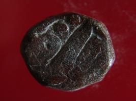 | Description / विवरण | Copper dam fulus of Akbar 962-1014 AH; 1556-1605 AD , from an unknown unidentifiable mint. Obverse fragments of zarb fulus with a quatrefoil. Reverse fragments of - 004 hazaar 1004 AH . |