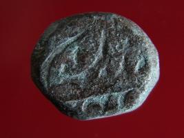 | Description / विवरण | Copper dam fulus of Akbar 962-1014 AH; 1556-1605 AD , from an unknown unidentifiable mint. Obverse traces of tankah Akbar shahi. Rest illegible. Reverse fragments of Ilahi - . Rest illegible. |