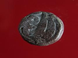 | Description / विवरण | Copper dam fulus of Akbar 962-1014 AH; 1556-1605 AD , from an unknown unidentifiable mint. Obverse fragments of fulus with a quatrefoil. Reverse fragments of - 92 nuhsad |