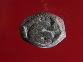 | Description / विवरण | Copper dam fulus of Akbar 962-1014 AH; 1556-1605 AD , from an unknown unidentifiable mint. Obverse fragments of zarb fulus. Reverse fragments of sanh fi --9 |