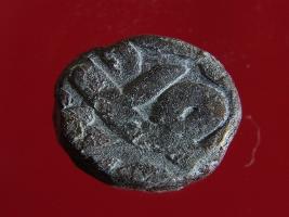 | Description / विवरण | Copper dam fulus of Akbar 962-1014 AH; 1556-1605 AD , from an unknown unidentifiable mint. Obverse, fragments of fulus .. Reverse fragments of nuhsad Rest illegible |