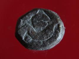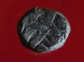 | Description / विवरण | Copper dam fulus of Akbar 962-1014 AH; 1556-1605 AD , from an unknown unidentifiable mint. Obverse fragments of zarb fulus with a quatrefoil. Reverse fragments of 1001 hazaar - |