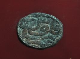 | Description / विवरण | Copper dam fulus of Akbar 962-1014 AH; 1556-1605 AD , from an unknown unidentifiable mint. Obverse fragments of zarb fulus Reverse fragments of sanh fi -74 nuhsad 974 |