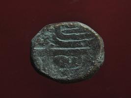 | Description / विवरण | Copper dam fulus of Akbar 962-1014 AH; 1556-1605 AD , from an unknown unidentifiable mint. Obverse fragments of zarb fulus and a quatrefoil Reverse fragments of sanh fi -99 nuhsad 999 |