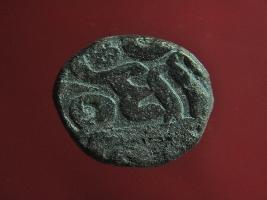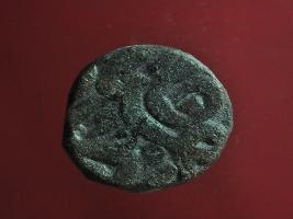 | Description / विवरण | Copper dam fulus of Akbar 962-1014 AH; 1556-1605 AD , from an unknown unidentifiable mint. Obverse fragments of zarb Hasu sikkah fulus Reverse fragments of sanh 996 nuhsad va with a quatrefoil |