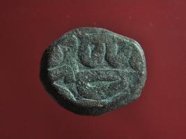 | Description / विवरण | Copper dam fulus of Akbar 962-1014 AH; 1556-1605 AD , from an unknown unidentifiable mint. Obverse fragments of zarb - sikkah fulus Reverse fragments of sanh 1001- with a quatrefoil Rest illegible. |