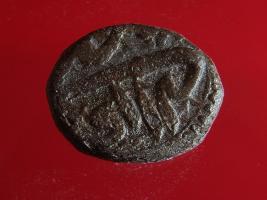 | Description / विवरण | Copper dam fulus of Akbar 962-1014 AH; 1556-1605 AD , from the Atak Banaras mint Obverse zarb Fulus Atak Banaras The legend is enclosed in a circle with dots; partially visible with a decorative background. Reverse Ilahi 41 Mihr |