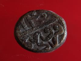 | Description / विवरण | Copper dam fulus of Akbar 962-1014 AH; 1556-1605 AD , from the Atak Banaras mint Obverse zarb Fulus Atak Banaras The legend is enclosed in a circle with dots; partially visible with a decorated background. Reverse Ilahi 40 Farvardin |