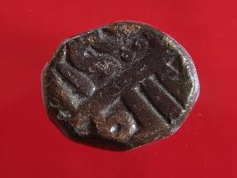 | Description / विवरण | Copper dam fulus of Akbar 962-1014 AH; 1556-1605 AD , from the Delhi mint. Obverse, fragmentary zarb Dehli fulus Reverse Ilahi 35 Ardibihisht Reading uncertain, because of the fragmentary nature of the legends. |