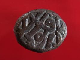 | Description / विवरण | Copper dam fulus of Akbar 962-1014 AH; 1556-1605 AD , from the Delhi mint. Obverse zarb fulus hazrat Delhi Reverse Ilahi 37 Isfandarmoz Most of the inscriptions are off- flan; only the loop of fay and the dot of noon are legible. |