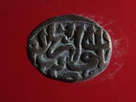 | Description / विवरण | Copper dam fulus of Akbar 962-1014 AH; 1556-1605 AD , from the Dogam mint. Obverse zarb Dogam off-flan fulus Dar ul salaam in circle visible on top Reverse sanh fi nuhsad with trefoil va hashtad va seh 983 AH . |