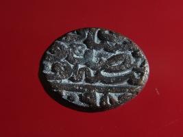 | Description / विवरण | Copper dam fulus of Akbar 962-1014 AH; 1556-1605 AD , from the Dogam mint. Obverse zarb Dogam fulus Dar ul Khilafat Reverse 98- sanh - fi nuhsad with terminal trefoil va hashtad -. |