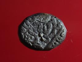 | Description / विवरण | Copper dam fulus of Akbar 962-1014 AH; 1556-1605 AD , from the Dogam mint. Obverse fragmentary Dogam fulus Dar ul salaam Reverse 998 sanh fi nuhsad with terminal trefoil navad - . |