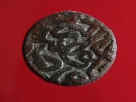 | Description / विवरण | Copper dam fulus of Akbar 962-1014 AH; 1556-1605 AD , from the Dogam mint. Obverse fragments of Dogam fulus Dar ul salaam Reverse sanh nuhsad navad - 99- With a trefoil at the termination of the dal of nuhsad. |