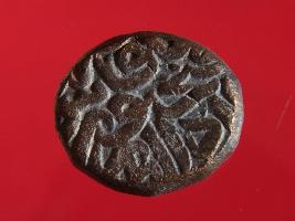 | Description / विवरण | Copper dam fulus of Akbar 962-1014 AH; 1556-1605 AD , from the Fatehpur mint. Obverse fragments of Dar ul Sultanah Fatehpur fulus zarb. Reverse fragments of sanh fi 986 nuhsad va hashtad shash. |