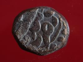 | Description / विवरण | Copper dam fulus of Akbar 962-1014 AH; 1556-1605 AD , from the Gobindpur mint. Obverse Zarb Gobindpur - . Tankah Akbar shahi largely off flan; Traces of circle with dots. Partially ringing the legend. Reverse Ilahi -- Bahman. Legend partially ringed by a circle with dots. |