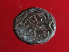 | Description / विवरण | Copper dam fulus of Akbar 962-1014 AH; 1556-1605 AD , from the Agra mint. Obverse Fragments of Zarb off flan Hissar Firoza Fulus Reverse Sanh fi 982 Nuhsad Quaterfoil |
