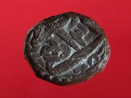 | Description / विवरण | Copper dam fulus of Akbar 962-1014 AH; 1556-1605 AD , from the Ilahabas Allahabad mint. Obverse zarb Ilhabas partially ringed in a beaded circle Reverse Ilahi 31 Mihr fragmentary |