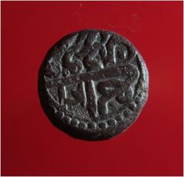 | Description / विवरण | Copper dam fulus of Akbar 962-1014 AH; 1556-1605 AD , from the Kora mint. Obverse In circle with dots Zarb Fulus Kora Reverse In double circle with dots partial Ilahi 31 Farvandin |