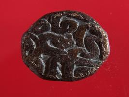| Provenance / उद्गम/क्षेत्र | Reportedly found in village Satiawala, thana Sadar, Dist. Fzpr, 4 km off the Fzpr-Moga road in the field of Harbans Singh s o Jang Singh while excavating earth for making bricks. Sent by DC SSP Fzpr to the dept and entered in its registers on 30 03 2003. Part of a large hoard of 3070 coins all copper |
