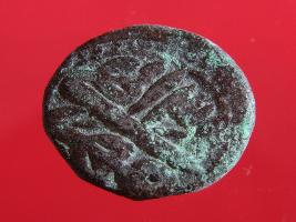| Provenance / उद्गम/क्षेत्र | Reportedly found in village Satiawala, thana Sadar, Dist. Fzpr, 4 km off the Fzpr-Moga road in the field of Harbans Singh s o Jang Singh while excavating earth for making bricks. Sent by DC SSP Fzpr to the dept and entered in its registers on 30 03 2003. Part of a large hoard of 3070 coins all copper |