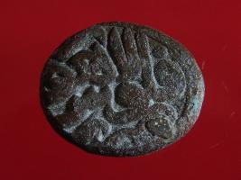 | Provenance / उद्गम/क्षेत्र | Reportedly found in village Satiawala, thana Sadar, Dist. Fzpr, 4 km off the Fzpr-Moga road in the field of Harbans Singh s o Jang Singh while excavating earth for making bricks. Sent by DC SSP Fzpr to the dept and entered in its registers on 30 03 2003. Part of a large hoard of 3070 coins all copper |