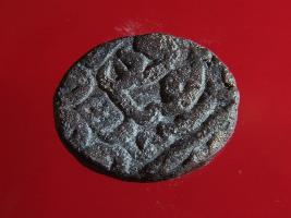 | Description / विवरण | Copper dam fulus of Akbar 962-1014 AH; 1556-1605 AD , from the Lakhnau Lucknow mint. Obverse from below Zarb Lakhnau fulus Dar ul Khilafah largely off flan . Reverse sanh fi nuhsad va 9-- As usual, fragmentary legends. |