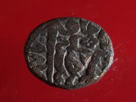 | Provenance / उद्गम/क्षेत्र | Reportedly found in village Satiawala, thana Sadar, Dist. Fzpr, 4 km off the Fzpr-Moga road in the field of Harbans Singh s o Jang Singh while excavating earth for making bricks. Sent by DC SSP Fzpr to the dept and entered in its registers on 30 03 2003. Part of a large hoard of 3070 coins all copper |