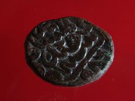 | Description / विवरण | Copper dam fulus of Akbar 962-1014 AH; 1556-1605 AD , from the Lakhnau Lucknow mint. Obverse Zarb Lakhnau fulus Dar ul Khilafah Reverse 986 sanh fi nuhsad va hashtad As usual, fragmentary legends. |