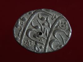 | Description / विवरण | The coin is that of the Emperor Farrukhsiyar 1124-31 AH regnal year 7. Hijri date, 1130 AH, is in the middle line, below seem Obverse Sikkah Zad Az Fazal Haq Bar Seem-o-Zar Badshah Bahar-o-Bar Farrukhsiyar The legend is enclosed in a circle with dots, but only a portion is visible, the rest being off-flan. Reverse Julus Manus Maimanat Sanh 7 Zarb Dar Ul Khilafah Shah Jahanabad The legend is again enclosed in a double circle with dots, but as on the obverse, only a portion of it appears on the flan. |