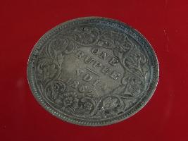 | Description / विवरण | A silver rupee of Queen Victoria, crowned head, facing left Obverse Legend Victoria Queen Reverse One rupee India 1862 In circle sorrounded by a floral vine. |
