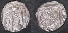 | Description / विवरण | Descrpn./Obv In the centre, a chhatra with Sa and Ta in Gurumukhi script on the left and right of its shaft; traces of the Persian legend seen on the obverse of the bigger Nanakshahi coins of Amritsar mint are also seen. Descrpn./Rev Big peepal leaf and traces of the Persian legend seen on the reverse of the bigger Nanakshahi coins of Amiritsar mint - Shri Amritsarjiv zarb [VS Year] Takht maimanat julus manus Akal Bakht. Especially traces of alif of Akal and te of Takht and maimanat are seen |