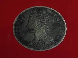 | Description / विवरण | A silver rupee of Queen Victoria, crowned head, facing left Obverse Legend Victoria Empress Reverse One rupee India 1885 In circle sorrounded by a floral vine. |
