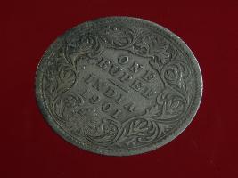 | Description / विवरण | A silver rupee of Queen Victoria, crowned head, facing left Obverse Legend Victoria Empress Reverse One rupee India 1901 In circle sorrounded by a floral vine. |