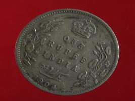 | Description / विवरण | A silver rupee of Bald head of Emperor King Edward VII- facing right Obverse Legend Edward VII- King & Emperor Reverse One rupee India 1904 yak rupiah in persian script |