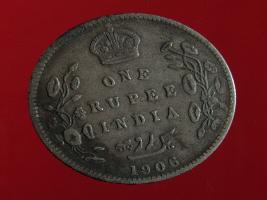| Description / विवरण | A silver rupee of Bald head of Emperor King Edward VII- facing right Obverse Legend Edward VII- King & Emperor Reverse One rupee India 1906 yak rupiah in persian script |