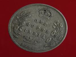 | Description / विवरण | A silver rupee of Bald head of Emperor King Edward VII- facing right Obverse Legend Edward VII- King & Emperor Reverse One rupee India 1906 yak rupiah in persian script |