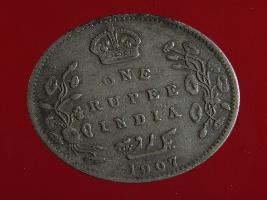 | Description / विवरण | A silver rupee of Bald head of Emperor King Edward VII- facing right Obverse Legend Edward VII- King & Emperor Reverse One rupee India 1907 yak rupiah in persian script |