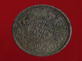 | Description / विवरण | A silver rupee of crowned King Emperor George V facing left Obverse Legend George V- King Emperor Reverse In circle One rupee India 1916 yak rupiah in persian script in centre enclosed with floral wreath |