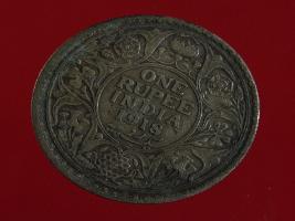 | Description / विवरण | A silver rupee of crowned King Emperor George V facing left Obverse Legend George V- King Emperor Reverse In circle One rupee India 1919 yak rupiah in persian script |