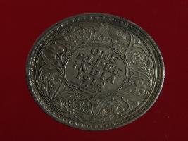| Description / विवरण | A silver rupee of crowned King Emperor George V facing left Obverse Legend George V- King Emperor Reverse In circle One rupee India 1919 yak rupiah in persian script |