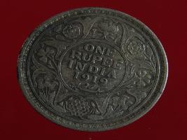 | Description / विवरण | A silver rupee of crowned King Emperor George V facing left Obverse Legend George V- King Emperor Reverse In circle One rupee India 1919 yak rupiah in persian script |