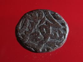 | Description / विवरण | Copper dam fulus of Akbar 962-1014 AH, 1556-1605 AD , from the Malpur mint. Obverse zarb Malpur sikkah fulus Reverse 9 85 nuhsad hashtad - |