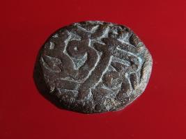 | Description / विवरण | Copper dam fulus of Akbar 962-1014 AH, 1556-1605 AD , from the Malpur mint. Obverse Malpur sikkah fulus Reverse 985 nuhsad hashtad - |