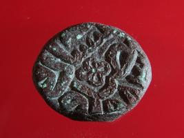 | Provenance / उद्गम/क्षेत्र | Reportedly found in village Satiawala, thana Sadar, Dist. Fzpr, 4 km off the Fzpr-Moga road in the field of Harbans Singh s o Jang Singh while excavating earth for making bricks. Sent by DC SSP Fzpr to the dept and entered in its registers on 30 03 2003. Part of a large hoard of 3070 coins all copper |
