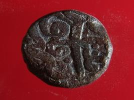 | Description / विवरण | Copper dam fulus of Akbar 962-1014 AH; 1556-1605 AD , from the Multan mint. Obverse Zarb fulus Multan Reverse Ilahi 38 - month unreadable; enclosed in double circle with dots, partial . |