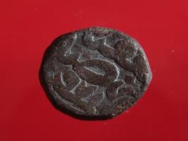 | Description / विवरण | Copper dam fulus of Akbar 962-1014 AH; 1556-1605 AD , from the Narnaul mint. Obverse zarb fulus Narnaul Reverse sanh 971 Nuhsad haftad - . |