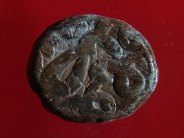 | Provenance / उद्गम/क्षेत्र | Reportedly found in village Satiawala, thana Sadar, Dist. Fzpr, 4 km off the Fzpr-Moga road in the field of Harbans Singh s o Jang Singh while excavating earth for making bricks. Sent by DC SSP Fzpr to the dept and entered in its registers on 30 03 2003. Part of a large hoard of 3070 coins all copper |